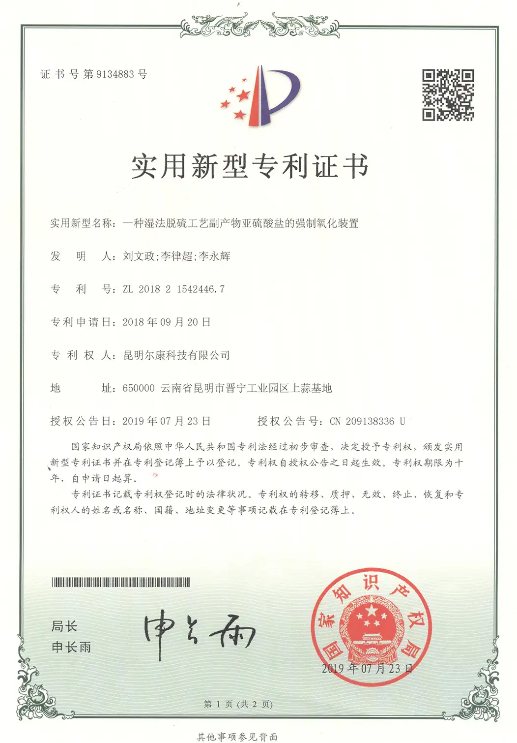 专利证书