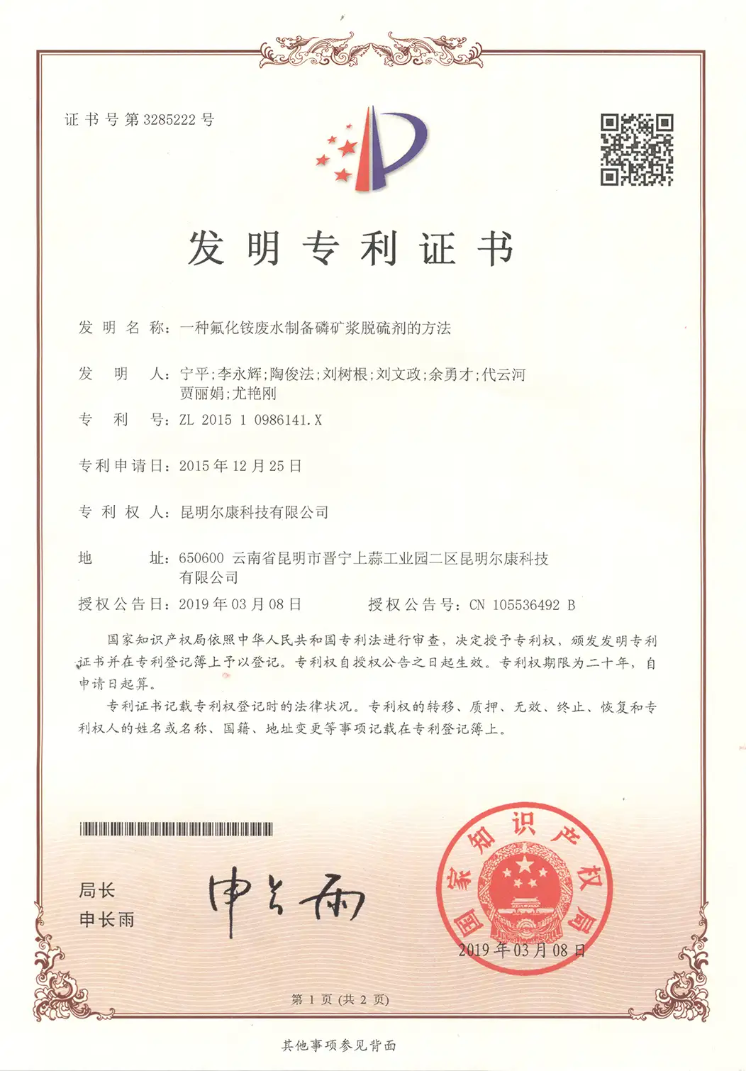 专利证书