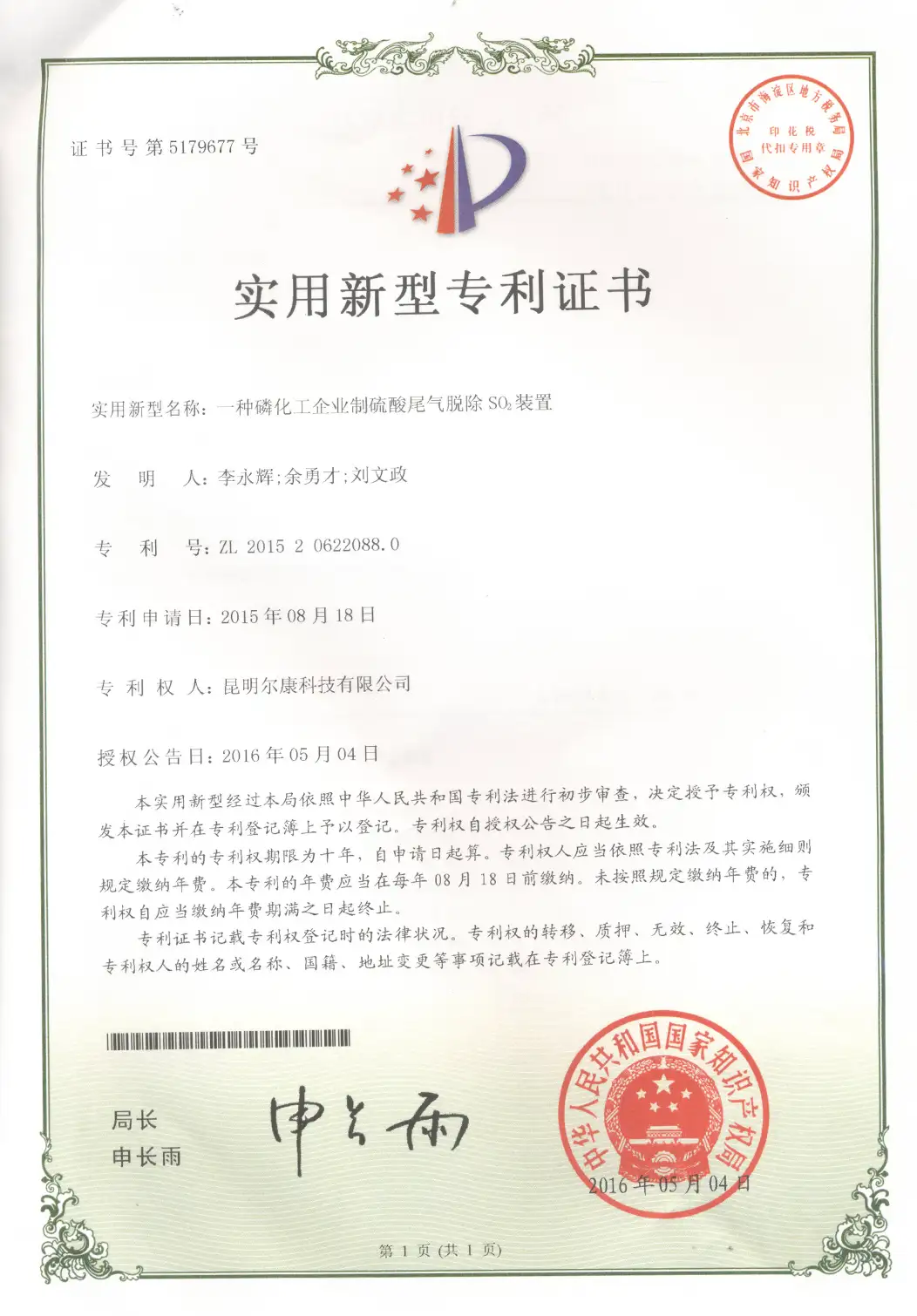 一种磷化工企业制硫酸尾气脱除SO2装置